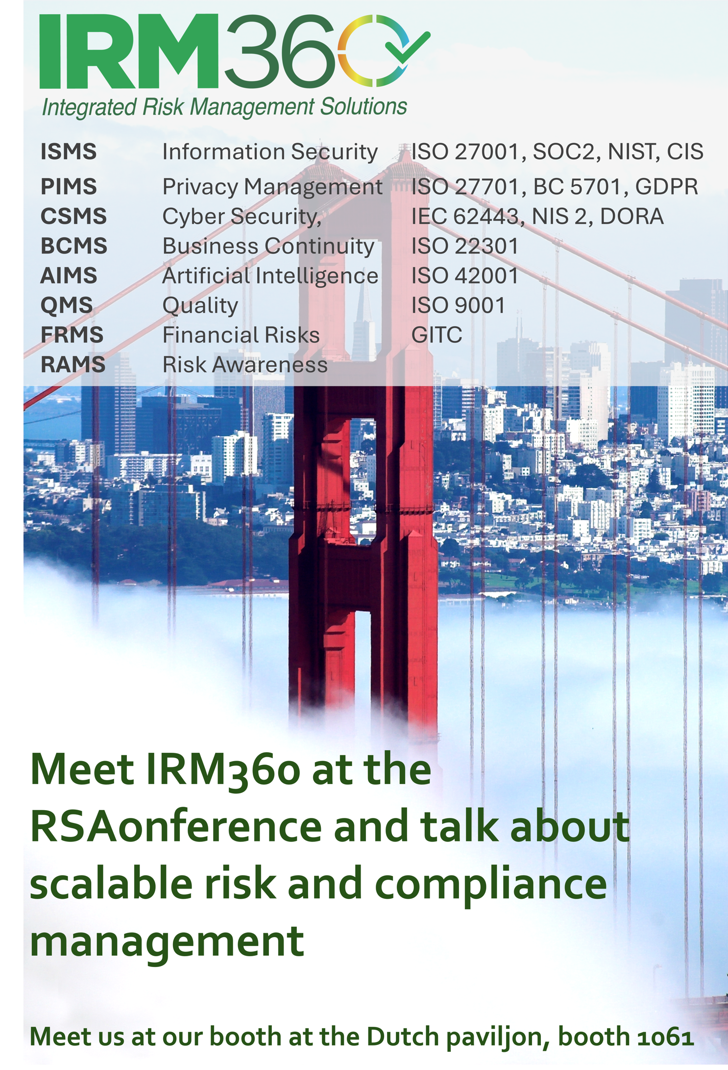 Als trotse vertegenwoordigers van de Nederlandse delegatie zullen we onze CyberManager-oplossing presenteren in het Nederlandse paviljoen. Onze oplossing biedt uitgebreide mogelijkheden voor informatie- en cyberbeveiliging, privacy beheer, risicomanagement en bedrijfscontinuïteit. We kijken er naar uit om in contact te komen met brancheleiders en organisaties. Zien we u daar?