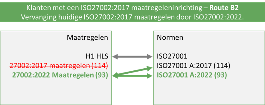 Zodra u de ISO27002:2017 maatregeleninrichting in uw omgeving heeft, kunt u de keuze maken tussen Route B1 of Route B2.